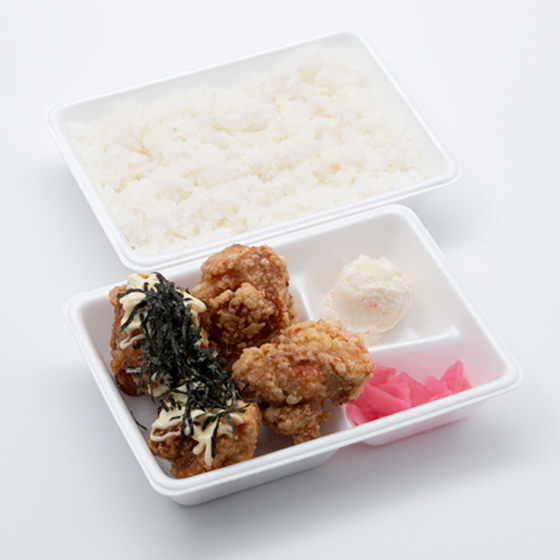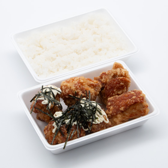 オリジナルげんこつスパイスで仕上げたからあげが4つ、オリジナルテリヤキソース、マヨネーズ、刻みのりで仕上げたてりマヨからあげ3つが入ったボリュームたっぷりのお弁当です。