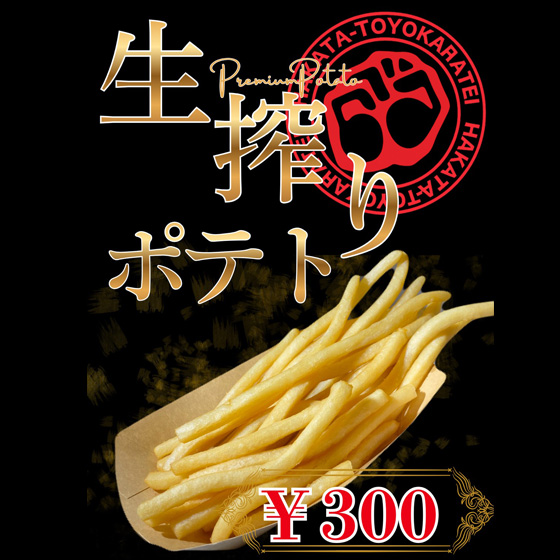 博多とよ唐亭熊本では、密かな人気商品ポテトサラダやカリカリとり皮に加え、熊本エリア限定の新商品「生絞りポテト」の販売を開始致しました。