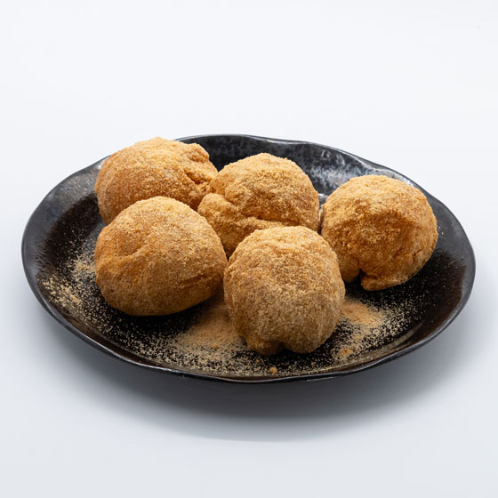 タピオカ粉を使用した和風スイーツ。ほんのり甘いきな粉をまぶして仕上げています。お弁当を食べた後のデザートに、おやつにと隠れた人気メニューです。(博多とよ唐亭の一部の店舗で販売中)